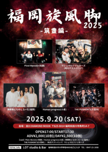 Pixie Monster(筑豊) / 熱帯魚とものくろーむ(福岡) / Human progress(小倉) / THE PUSHON'S(久留米) / マシュマロファッカーズ(地元ゲストバンド)